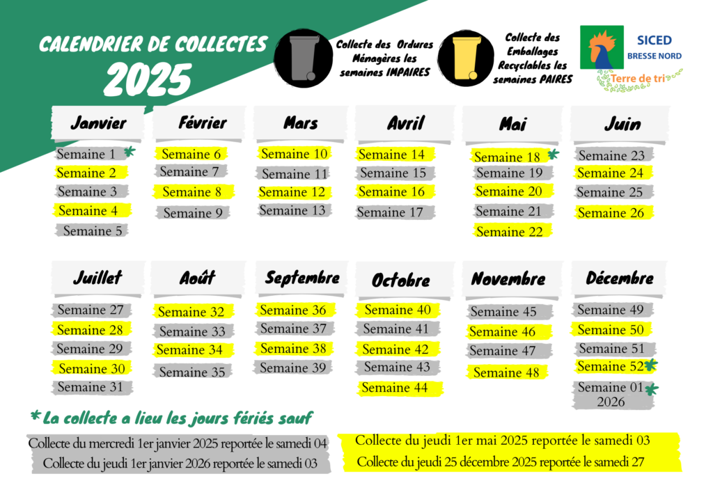Mercredi (les poubelles doivent être sorties le mardi soir)